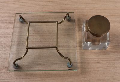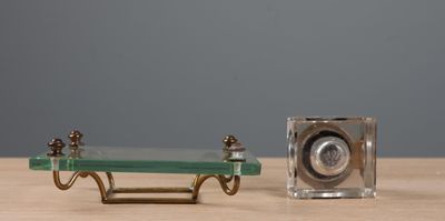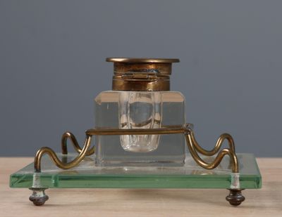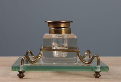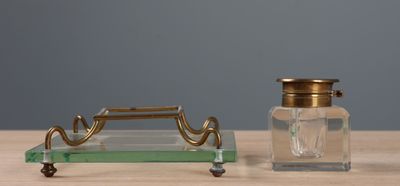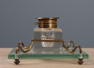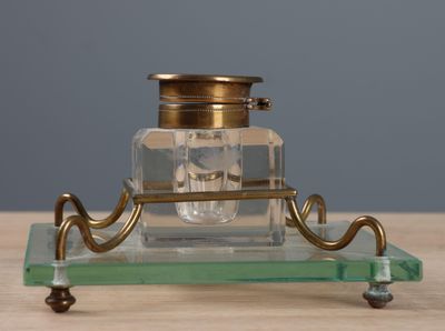 Encrier de bureau en cristal, reposant sur support en verre …