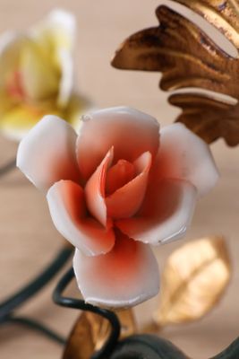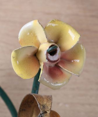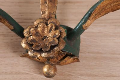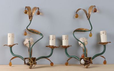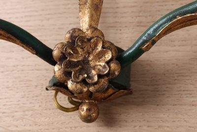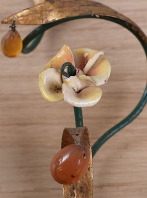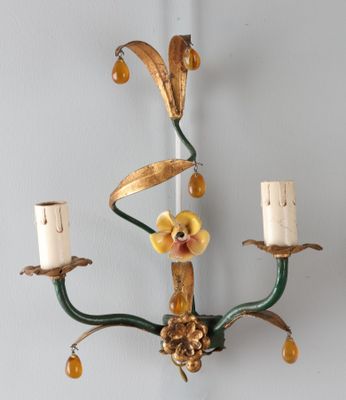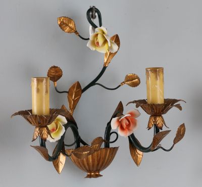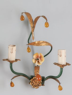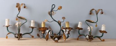 Suite de trois appliques en métal patiné et fleurette, l'une…
