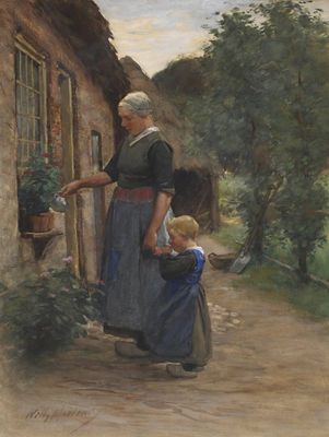 MARTENS Willy, 1856-1927 Hollandaise et son enfant au jardin