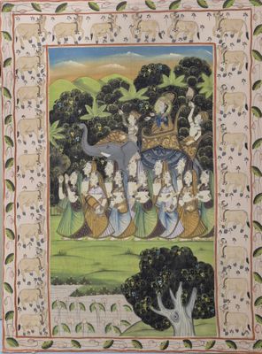 Ecole Indienne Suite de trois importantes peintures sur tiss…