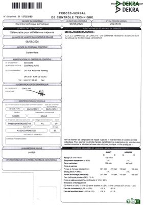 VP CI SKODA Modéle : SCALA 1,0L TSI 12V 110 CV Année : 2022 …