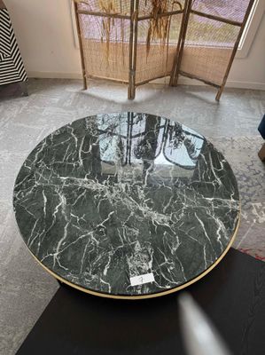 Table basse plateau marbre vert piètement doré