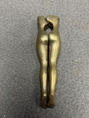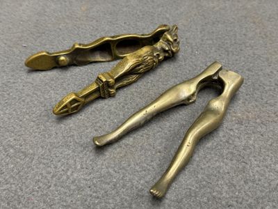 Deux casse-noisette en bronze: jambes de femme et chat