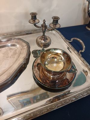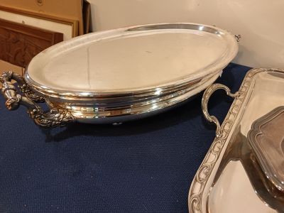 Ensemble de métal argenté cpt : grand plateau ERCUIS, plat e…