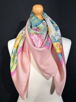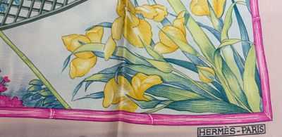 HERMÈS PARIS Carré 90 en twill de soie "Giverny", signé LT, …