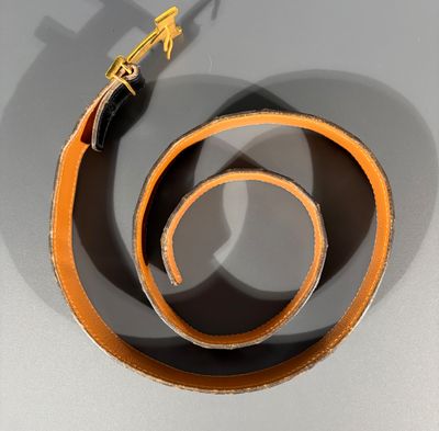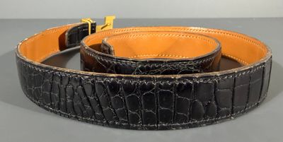 HERMES Ceinture en crocodile noir, boucle H en métal doré