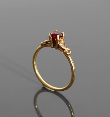 Fine bague en or jaune 18K 750 millièmes ornée d'un rubis (t…