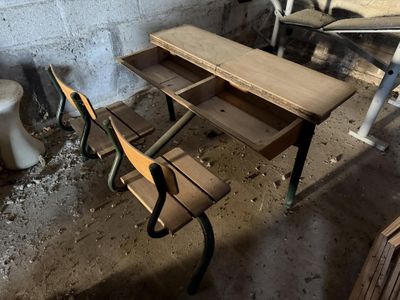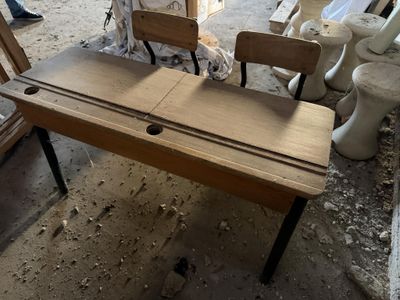 Bureau d'écolier en bois et piétement tubulaire en métal laq…