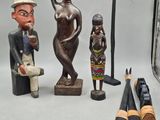 128 / G4 / Statues en bois ht 48, 40 et 32,5 cm.