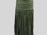 ANGELO TARLAZZI. Jupe longue en viscose kaki rehaussé de pai…