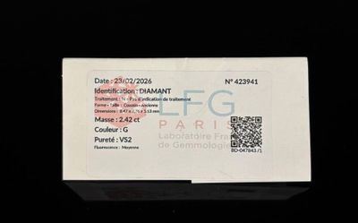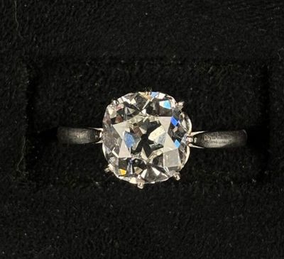 Le poids exact du diamant n'est pas mentionné, mais il est de taille coussin.