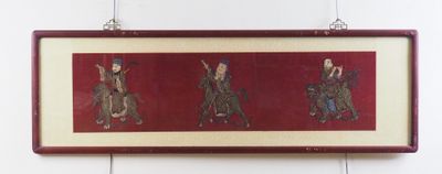Invendus Bandeau (en trois panneaux) en satin de soie et lin brodé re… Description Son estimation se situe entre 50 et 100 €. Présenté par PRIMARDECO à Toulouse. 4 photos disponibles.
