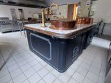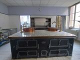 C. BAUDU Important fourneau en fonte, à 4 fours, 2 marmites …