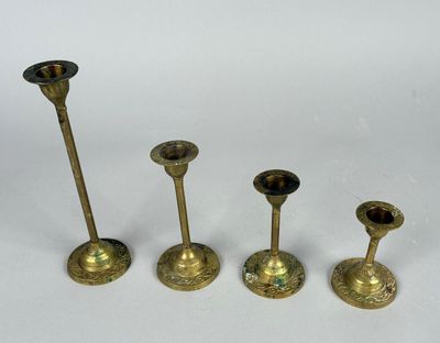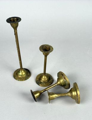 Invendus Bougeoirs (x4) en métal doré. H. Description Son estimation se situe entre 30 et 60 €. Présenté par OVV ROANNE ENCHERES à Roanne. 6 photos disponibles.