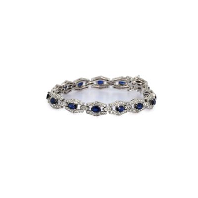 Invendus Bracelet ligne articulé en or gris 750‰, platine 950‰ et sap… Description Son estimation se situe entre 2 000 et 3 000 €. Présenté par Gros & Delettrez à Paris. 2 photos disponibles.