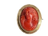 Quel est le prix d'occasion de « Broche ovale monture en or sertie d'un bas relief en corail … » ?