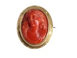 Broche ovale monture en or sertie d'un bas relief en corail …