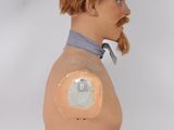 buste de mannequin en plâtre polychrome, les yeux en verre.