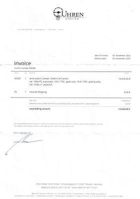 Quelle est la provenance de la montre Cartier Calibre de Cartier Réf. 3730?