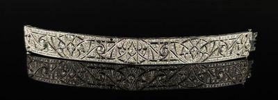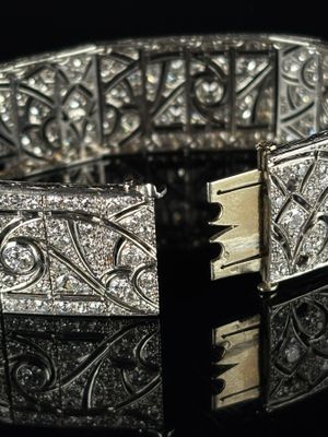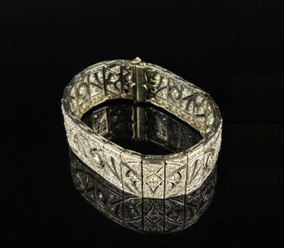 Ce superbe bracelet en or blanc, inspiré par la maison Cartier, incarne l'élégance et le savoir-faire artisanal. Réalisé avec des matériaux de haute qualité, il présente un design raffiné qui saura séduire les amateurs de joaillerie. Bien qu'aucune dimension précise ne soit fournie, son esthétique délicate le rend parfait pour toute occasion. L'intérêt pour ce type de pièce réside dans son association avec une marque prestigieuse, offrant un potentiel de valorisation à long terme. L'état du bracelet n'est pas spécifié, mais une inspection visuelle pourrait révéler des détails supplémentaires.