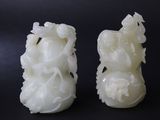 CHINE: Paire de sculptures en pierres blanches représentant …