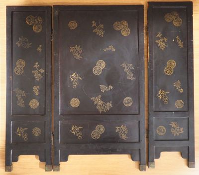 Invendus Chine, XXe siècle, Paravent à trois feuilles en laque noire … Description Son estimation se situe entre 50 et 80 €. Présenté par PRIMARDECO à Toulouse. 2 photos disponibles.