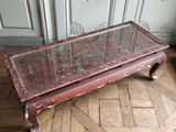 Quel est le prix d'occasion de « CHINE, XXe Table basse laquée à fond rouge, à décor de perso… » ?