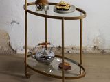 Quel est le prix d'occasion de « Desserte à roulettes en verre et métal laiton - dimensions: … » ?