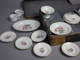 DEUX PARTIES DE DINETTE L'une en porcelaine et l'autre en te…