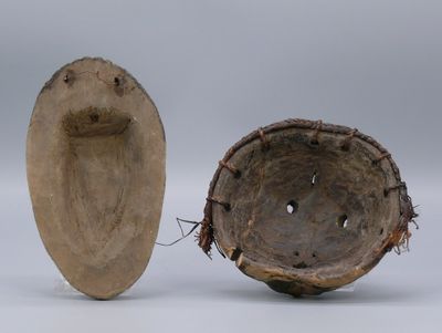 Deux petits masques en bois léger : l’un Luba Zela figurant …