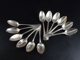 Douze cuillères à entremets en argent, dont onze modèle à fi…
