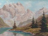 Ecole Française XXe siècle, Lac en montagne, Huile sur toile…