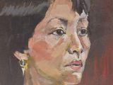 Ecole moderne, "Portrait de femme", huile sur carton.