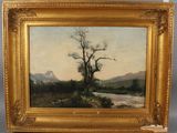 Ecole XIXème siècle. Paysage à l’arbre et à la rivière, huil…