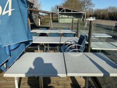 Cet ensemble de 27 tables de terrasse pour deux personnes est parfait pour les établissements de restauration souhaitant optimiser leur espace extérieur. Fabriquées en matériaux résistants aux intempéries, ces tables offrent à la fois durabilité et élégance. Leur design compact permet de maximiser l'occupation des terrasses tout en offrant un confort optimal aux clients. Bien que la mise à prix ne soit pas communiquée, cet ensemble est une opportunité à considérer pour les professionnels du secteur.
