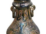 Quel est le prix d'occasion de « Ensemble en faïence comprenant JATTE signé "HR" et VASE balu… » ?