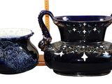 Ensemble en faïence à couverte bleu-nuit comprenant JARDINIE…