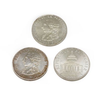 Le lot comprend trois pièces de 100 Francs, dont une datée de 1983.