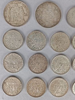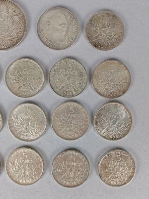 Invendus FRANCE. Lot de 16 pièces de 5 francs Semeuse, 1 pièce de 100… Description Son estimation se situe entre 280 et 300 €. Présenté par ORNE ENCHERES SARL à Alençon. 5 photos disponibles.