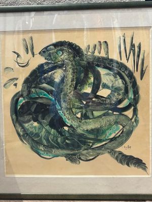 Invendus Gabrielle BOUFFAY (n. 1930) Serpent Description Son estimation se situe entre 30 et 50 €. Présenté par CONAN BELLEVILLE Hôtel d’Ainay à Lyon. 3 photos disponibles.