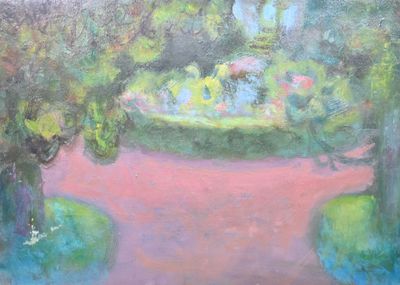 Cette peinture représente un jardin, typique du style moderne de Duboul, avec une attention particulière à la lumière et à la couleur.