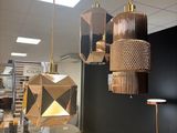 Quel est le prix d'occasion de « Grande suspension à trois lumières en verre cuivré (pas de r… » ?