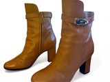 Quel est le prix d'occasion de « HERMES Bottines "Joueuse" en veau camel, fermeture boucle Ke… » ?