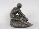 homme assis. Groupe en bronze à patine brune, portant une si…