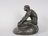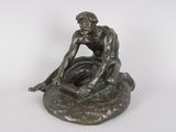 Quel est le prix d'occasion de « homme assis. Groupe en bronze à patine brune, portant une si… » ?