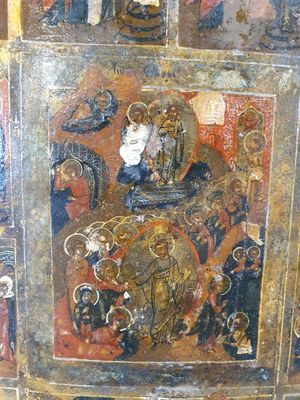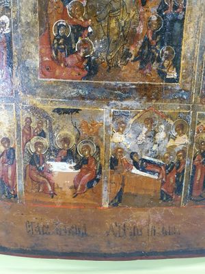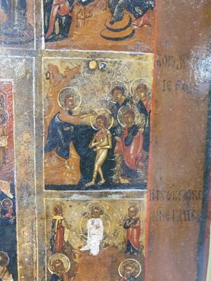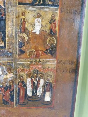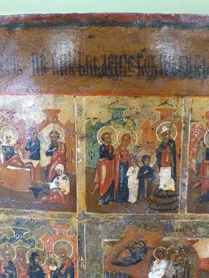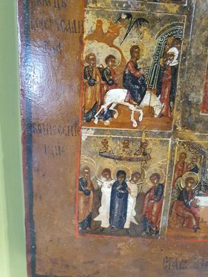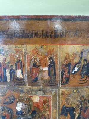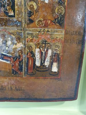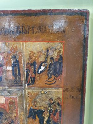 Icone russe figurant douze fêtes principales de l’Orthodoxie…