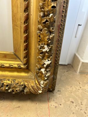 Important cadre en bois et stuc doré à décor d'une frise de …