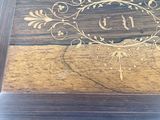 Quel est le prix d'occasion de « Important coffret à doucine en bois de différentes essences,… » ?
