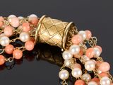 Important collier 7 rangs de perles de corail, perles Akoya …