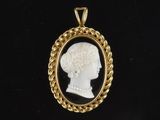Quel est le prix d'occasion de « Important pendentif de forme ovale à monture ajourée en or j… » ?